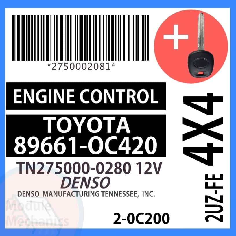 This engine control unit (ECU) will include a new, 4C transponder master key that has been programmed to the computer’s immobilizer system.